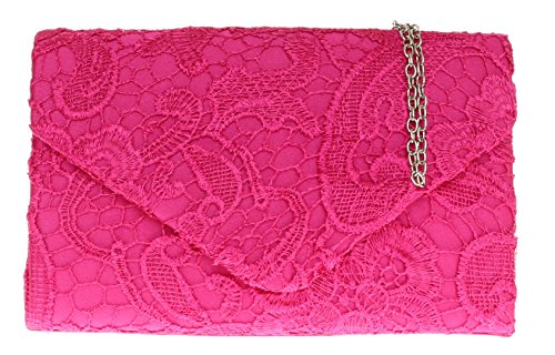 Koko offer Girly HandBags Satin Lace Clutch Bag Shoulder Chain Elegant Wedding Evening -- Fuchsia. This awesome product currently limited units, you can buy it now for £12.98, You save -