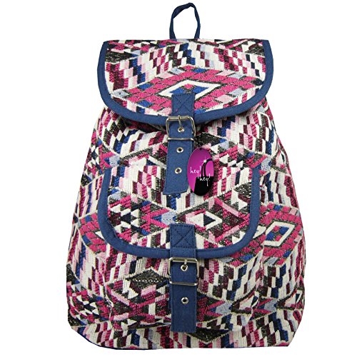 Hey Hey Handbags offer Hey Hey Handbags - Ladies Ethnic Backpack with Pocket, Colour : Pink White & Blue. This awesome product currently limited units, you can buy it now for £11.99, You save -
