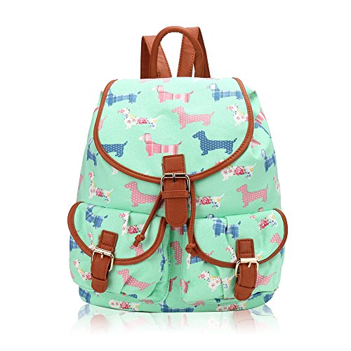 HB Style offer Vintage Owl Dachshund Sausage Dog Vintage Owl London Scotty Dog Polka Dot Design Canvas Retro Classic Backpack Rucksack School Bag College Shoulder Bag Hiking Gym Casual (Sausage - Green). This awesome product currently limited units, you can buy it now for £14.99, You save -